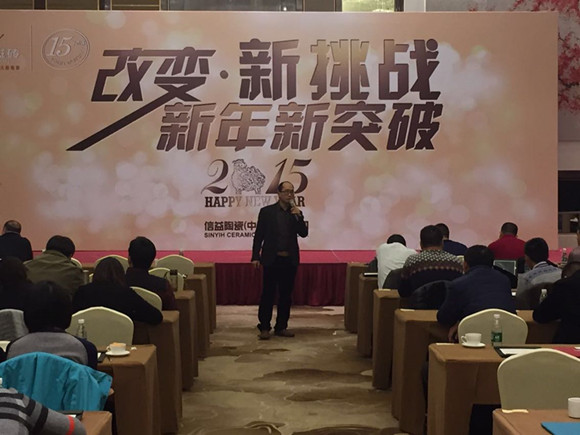 2015年1月28日,容纳咨询协助国内某顶尖磁砖品牌成功举办2015年营销备战的前期动员会。会议期间,容纳咨询就建材新形势下的终端营销方法为该企业代理商进行深入剖析、全面培训,帮助该企业代理商提高终端门店运营能力。
